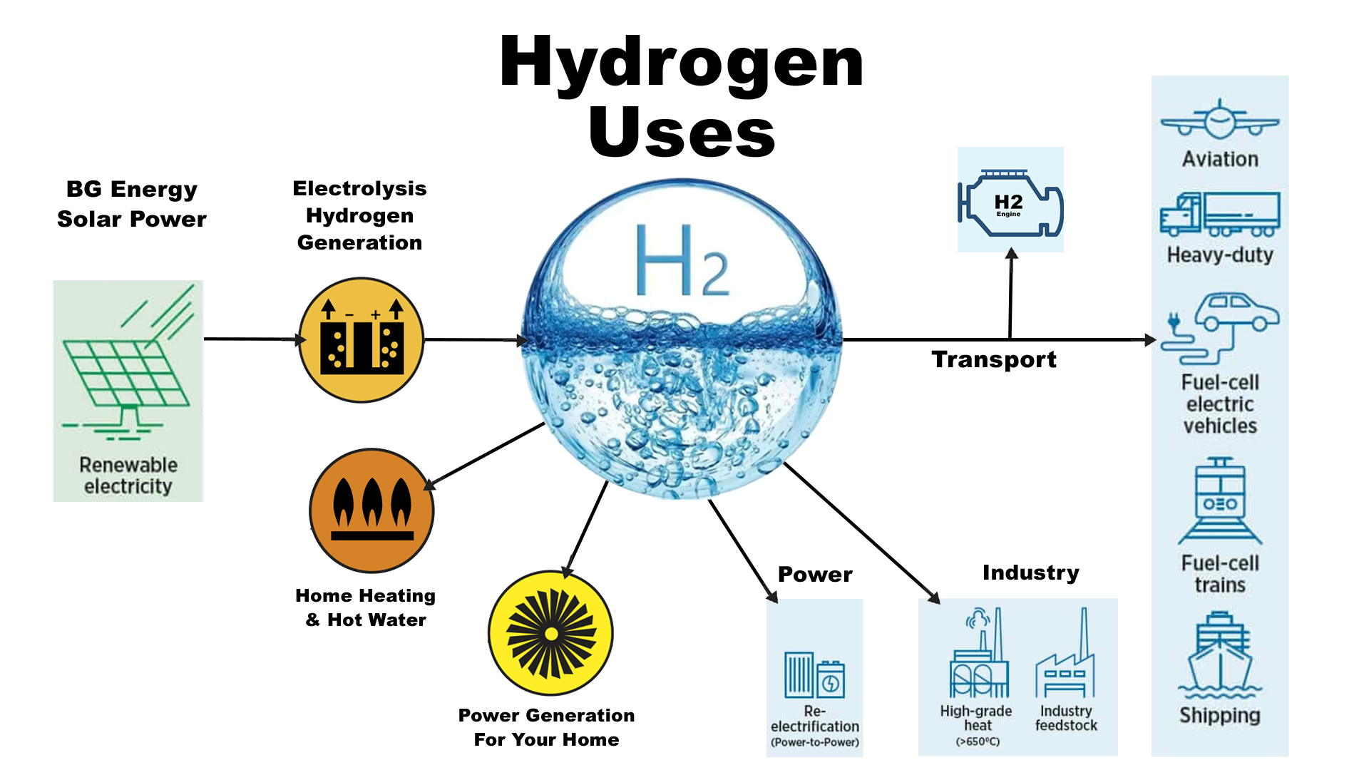Blue Green Energy is focused on “green” hydrogen. Green hydrogen is produced from water using electrolysis. To be considered green, the electricity used for the electrolysis must come from a zero emissions source such as solar power.